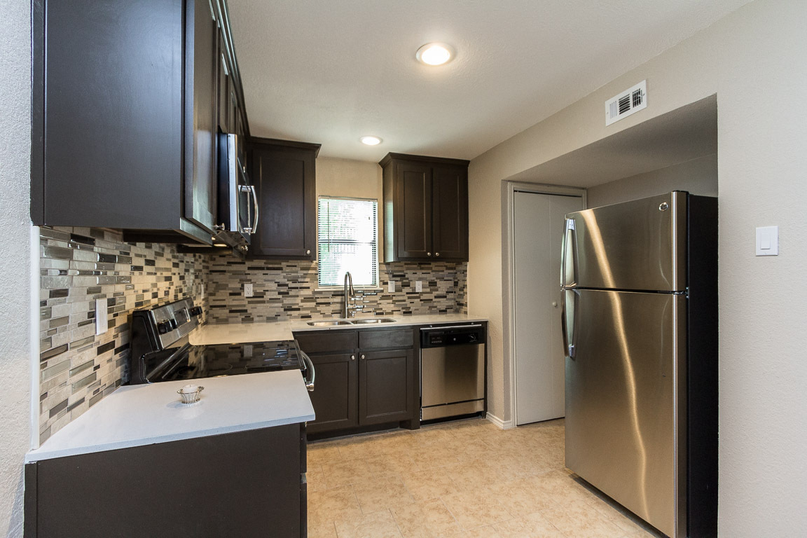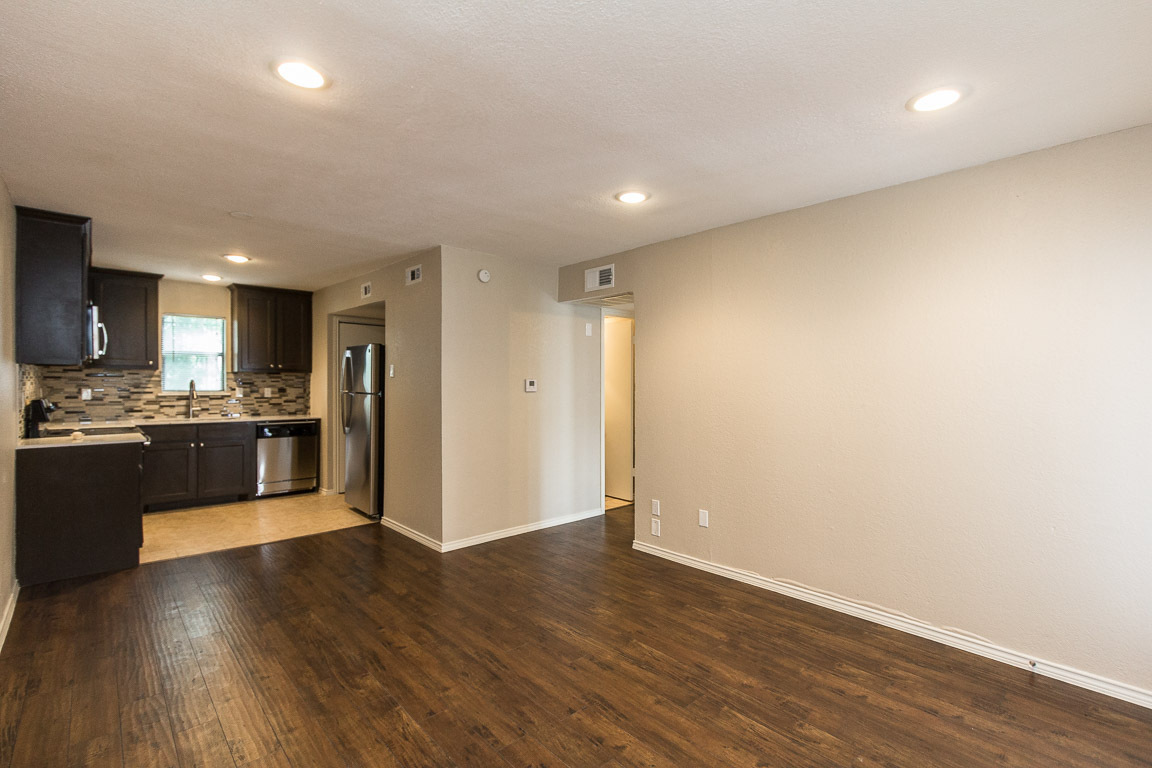 Fully renovated 2 bedroom, 2 bathroom apartment featuring brand new kitchen and bathroom cabinetry, quartz countertops, wood-style laminate flooring, stainless steel appliances, recessed lighting, and an open kitchen overlooking the living area. Two gated parking permits included. We are in the final stages of adding new amenities including a heated pool with hot tub, expanded pool deck, pergola with lounge seating, and BBQ grilling stations. Conveniently located with easy access to US-75 and I-30, and just minutes from shopping, dining, and entertainment.