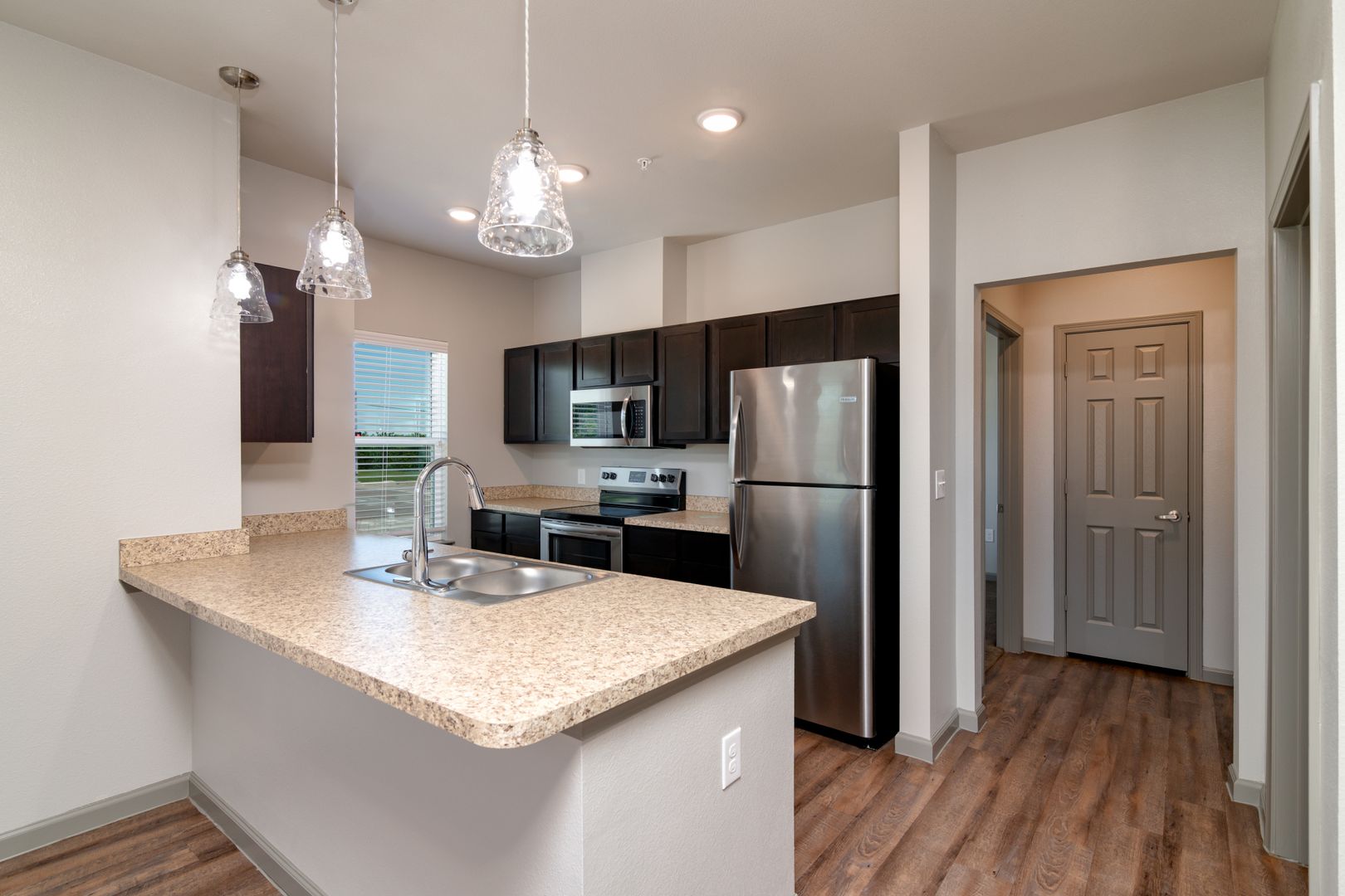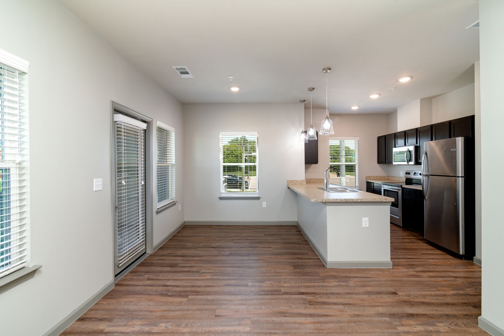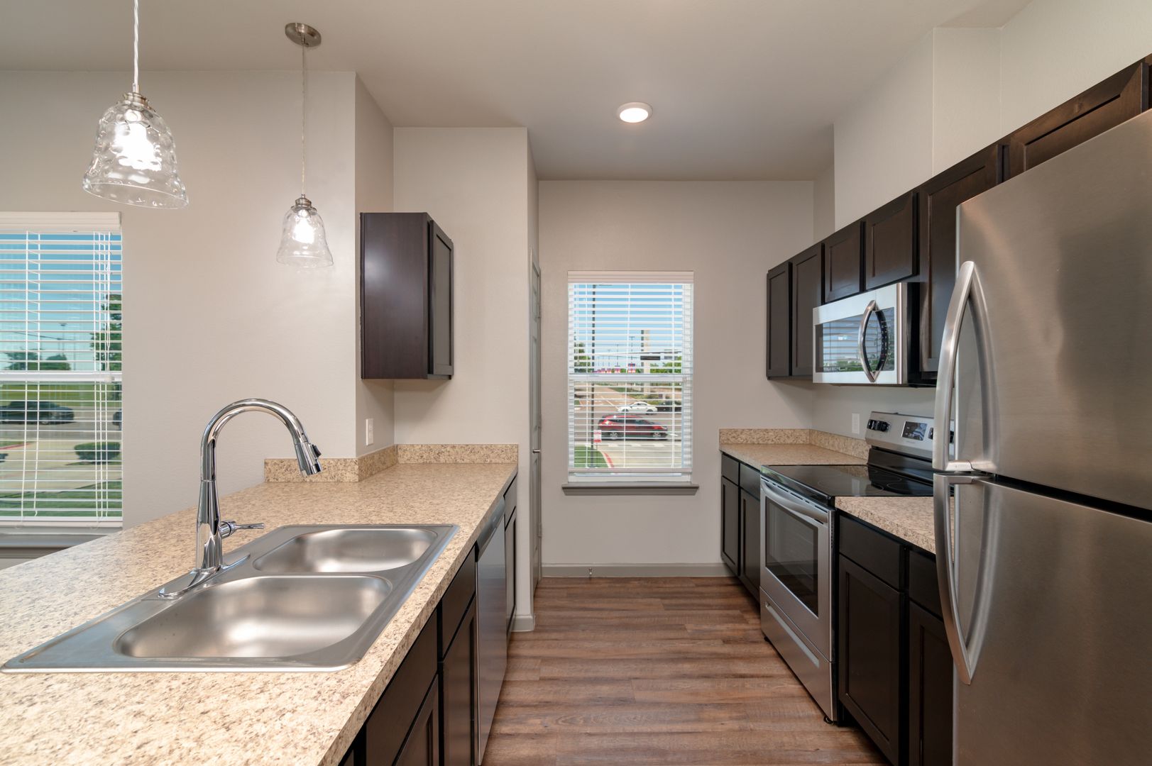 Luxurious 2 Bedroom / 2 full Bath (985 sq ft) - Stainless steel appliances, vinyl wood like flooring, full size washer/dryer in unit, beautiful kitchen and walk in closets. Pricing at $1,695.00. Utilities are separate.